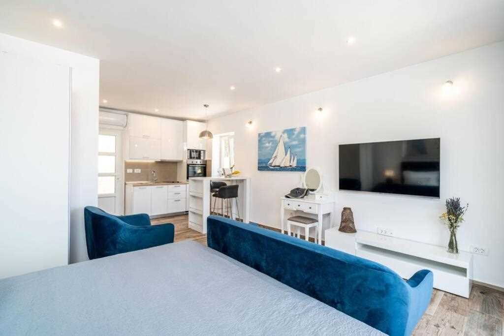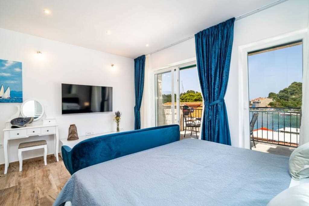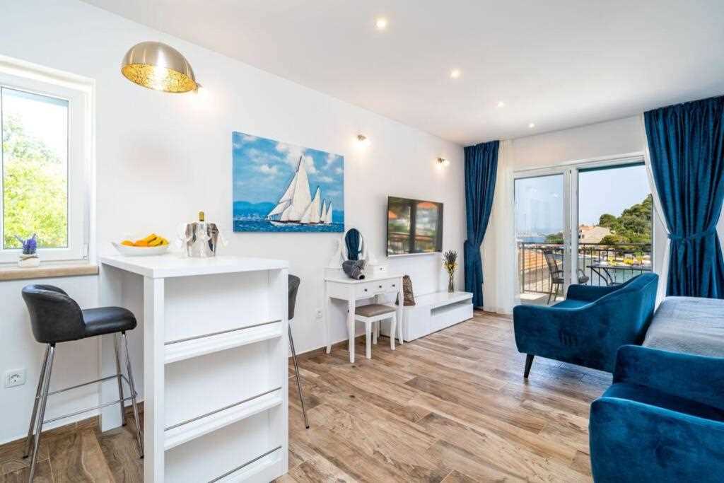Corralium blue is perfectly positioned in Pomena, the best location in Mljet in my opinion. A good balance of peace and bustle, five minute walk from the lakes. Rent a car and explore this beautiful island. The apartment is perfect for a short stay, it’s spacious, clean, with a lovely balcony overlooking the sea (albeit with a small concrete area in between). The best restaurant was Konobo Herc, not really for the food but for the view at sunset. The highlight was climbing down the steep hill in Ropa to the most incredible turquoise water. My one complaint is that aside from providing car hire details, communication was slow and I often had to send the same message multiple times to get a response (usually writhing around 6-8 hours) which was fine but not if there had been a problem. Other than that, a completely wonderful stay on a magical island.